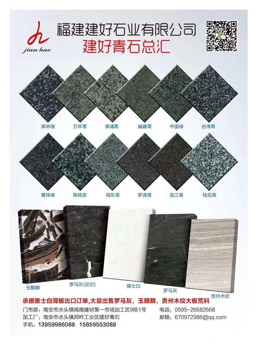 言升(建好)石業(yè)專業(yè)青石供應(yīng)商,自有礦山、實力工廠、水頭門市部一體;主營:青石、福建青、萬年青、漳浦青、廣西青、萬源青、四川青、森林綠、中國綠、古典綠、輝綠巖、桂林青,臺灣青等產(chǎn)品;園林景觀,石材背景墻,大板,荒料現(xiàn)貨供應(yīng)15375868088 13959986088;歡迎您來電溝通洽談業(yè)務(wù)!