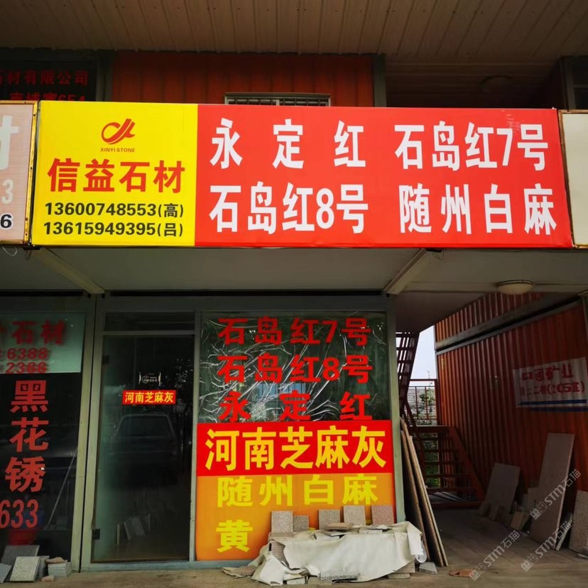 主要經(jīng)營的荒料有隨州白麻、黃金麻、石島紅7號、石島紅新8號、永定紅、664#