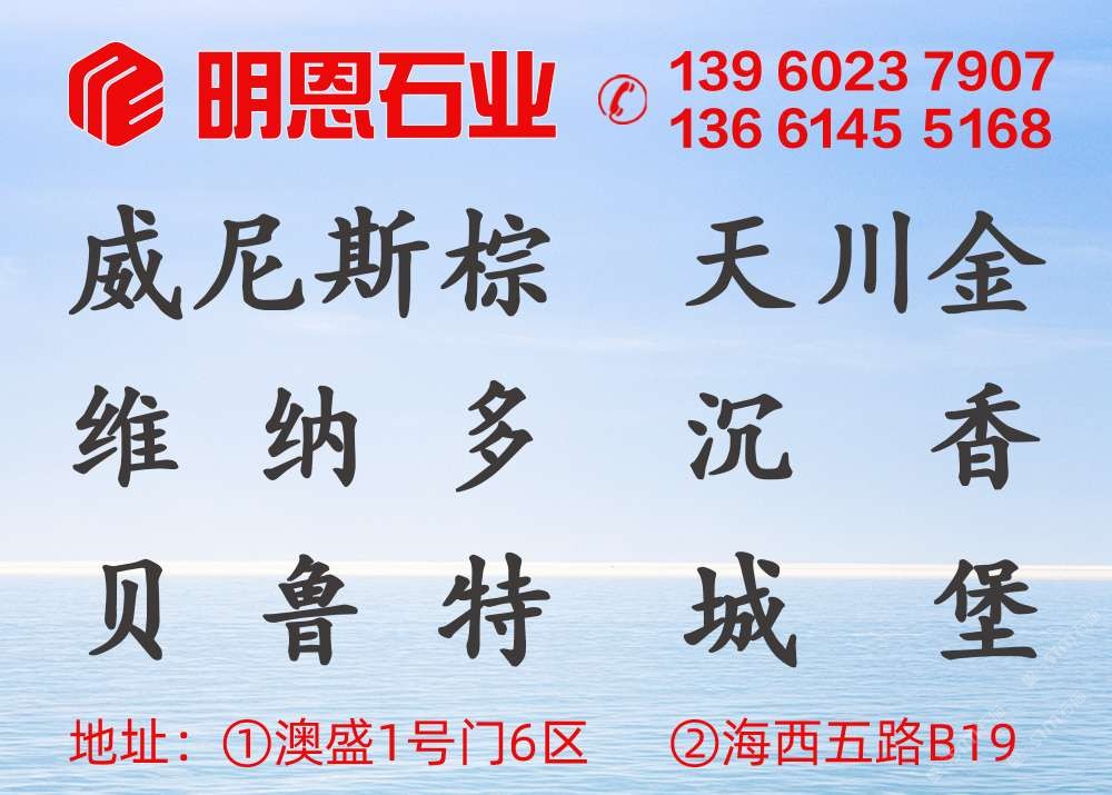上海明恩石業(yè)是一家專業(yè)大理石批發(fā)和成品供應 1:外墻系列:貝魯特(溫莎米黃),城堡米黃,沉香米黃,維納多~~荒料,各種厚度大板,成品供應。 2:輕奢系列:威尼斯棕,威尼斯黑,范特西,意大利天川金 產品從國外荒料﹣光板﹣(承接)成品單,一條龍服務。公司秉承"信譽至上,量大,質優(yōu),價廉"的原則,歡迎廣大新老客戶來我司參觀指導。