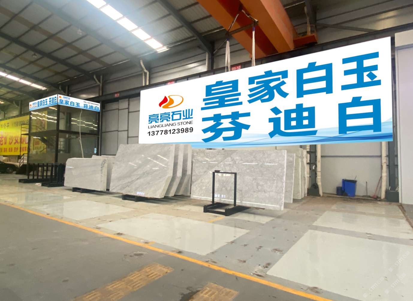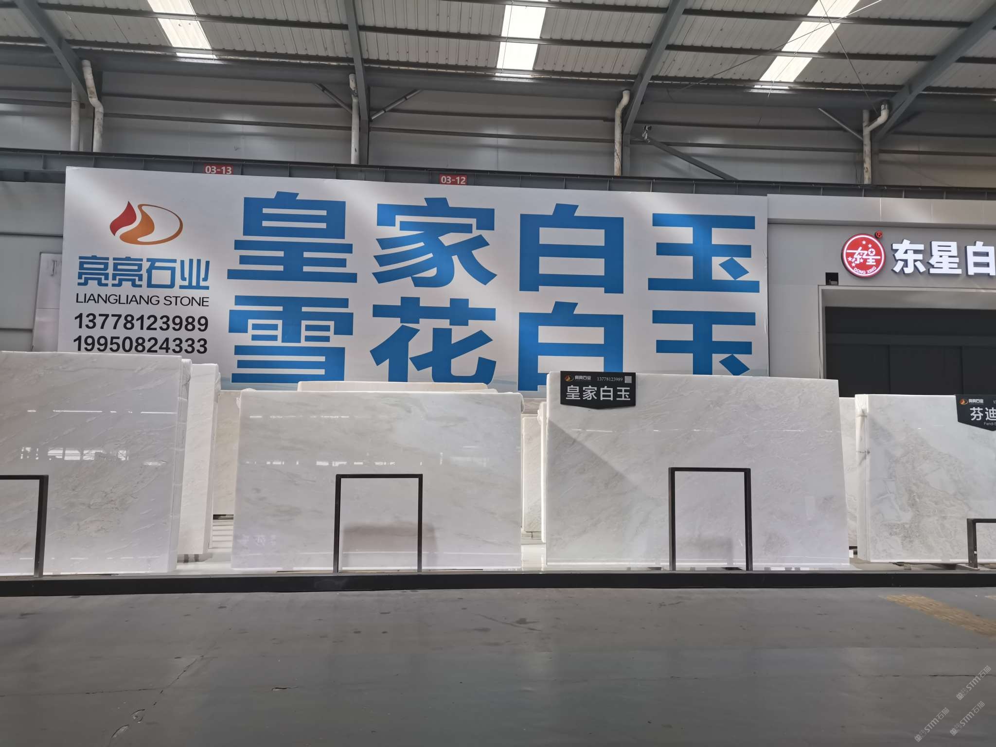 中國(guó)福建泉州水頭鎮(zhèn)東星大板市場(chǎng)三號(hào)門一通道亮亮石業(yè)皇家白玉專場(chǎng)