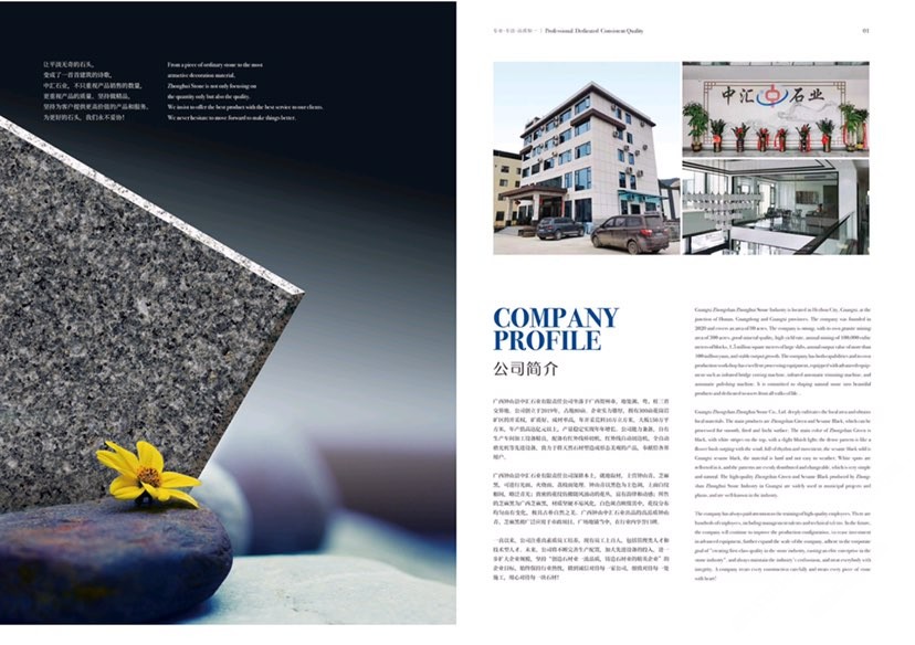 鐘山縣中匯石業(yè)有限責(zé)任公司坐落于廣西壯族自治區(qū)賀州市,地處湘、粵、桂三省交界地。公司創(chuàng)立于2019年,占地面積80余畝。企業(yè)實(shí)力雄厚,擁有300畝花崗巖礦區(qū)的開(kāi)采權(quán),礦質(zhì)好、成材率高,年開(kāi)采荒料10萬(wàn)立方米,大板150萬(wàn)平方米,年產(chǎn)值高達(dá)億元,產(chǎn)量穩(wěn)定實(shí)現(xiàn)連年增長(zhǎng)。公司才能兼?zhèn)?,自有生產(chǎn)車間,加工設(shè)備精良。配備有紅外線橋切機(jī)、紅外線自動(dòng)切邊機(jī)、全自動(dòng)磨光機(jī)、定厚機(jī)、仿形機(jī)、雕刻機(jī)等先進(jìn)設(shè)備,致力于將天然石材塑造成形態(tài)美觀的產(chǎn)品,奉獻(xiàn)給社會(huì)各界用戶。