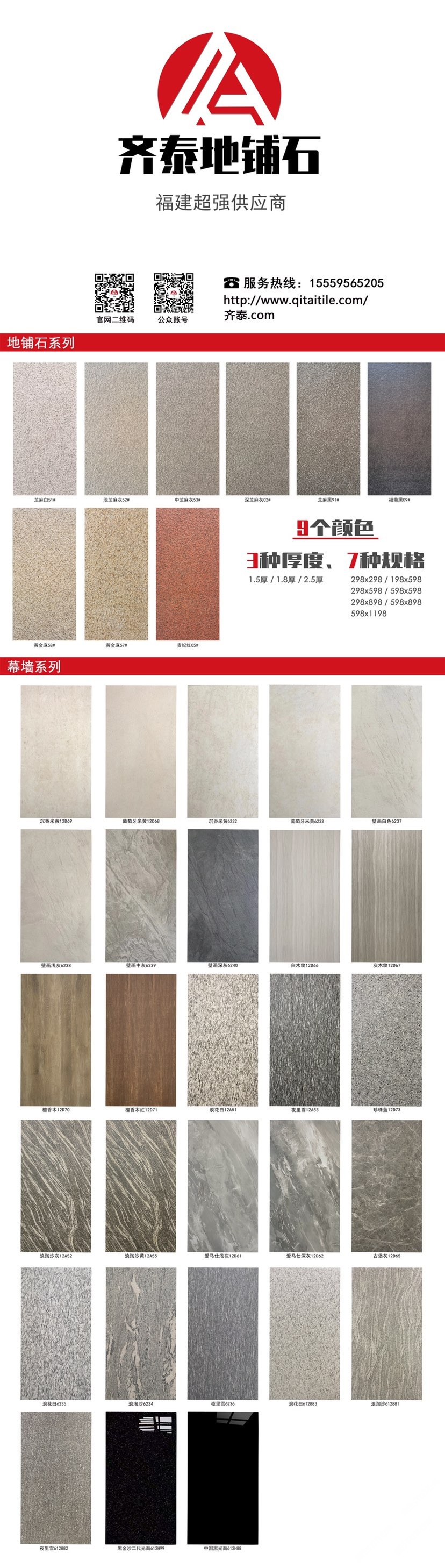 配套厚度:12MM/15MM/18MM/25 MM/30MM[規(guī)格齊全] 主營產(chǎn)品:地鋪石PC磚-石英磚-仿石磚-幕墻磚 (多款顏色)(多款規(guī)格)(工程定制)(免費寄樣)