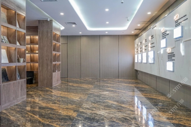 發(fā)布信息: 無錫斯通斯展廳 “琥珀灰其深沉的底色非常的沉穩(wěn)適合商務(wù)氛圍,其上跳脫的金線又賦予了更多的細節(jié)變化,使空間空間不至于過于沉悶單調(diào)。琥珀灰與各種材質(zhì)的兼容性都很高,當(dāng)和溫和典雅的木質(zhì)家具相結(jié)合時,可以輕松營造出輕奢、雅致感?!?/span>