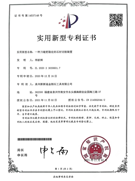 新途石材科技大理石奢石來料加工基地 各種專利