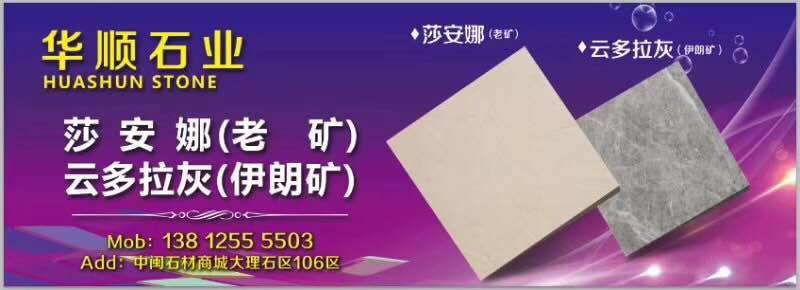 福建華順石業(yè) 聯(lián)系人:黃    176****8001 查看 138****5503 查看 主營范圍: 大板批發(fā)、荒料、大理石加工、礦山、石材外貿(mào)、 企業(yè)地址:福建泉州南安市G324(福昆線)華順石業(yè)佰科一二工廠