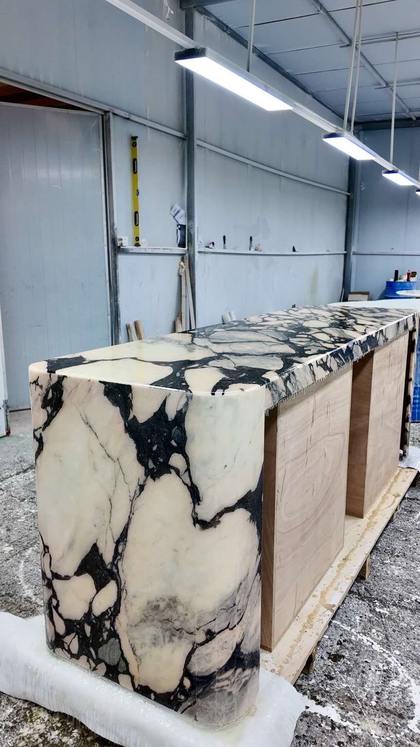 壹芯奢石:寶格麗粉,島臺(tái)定制試裝效果