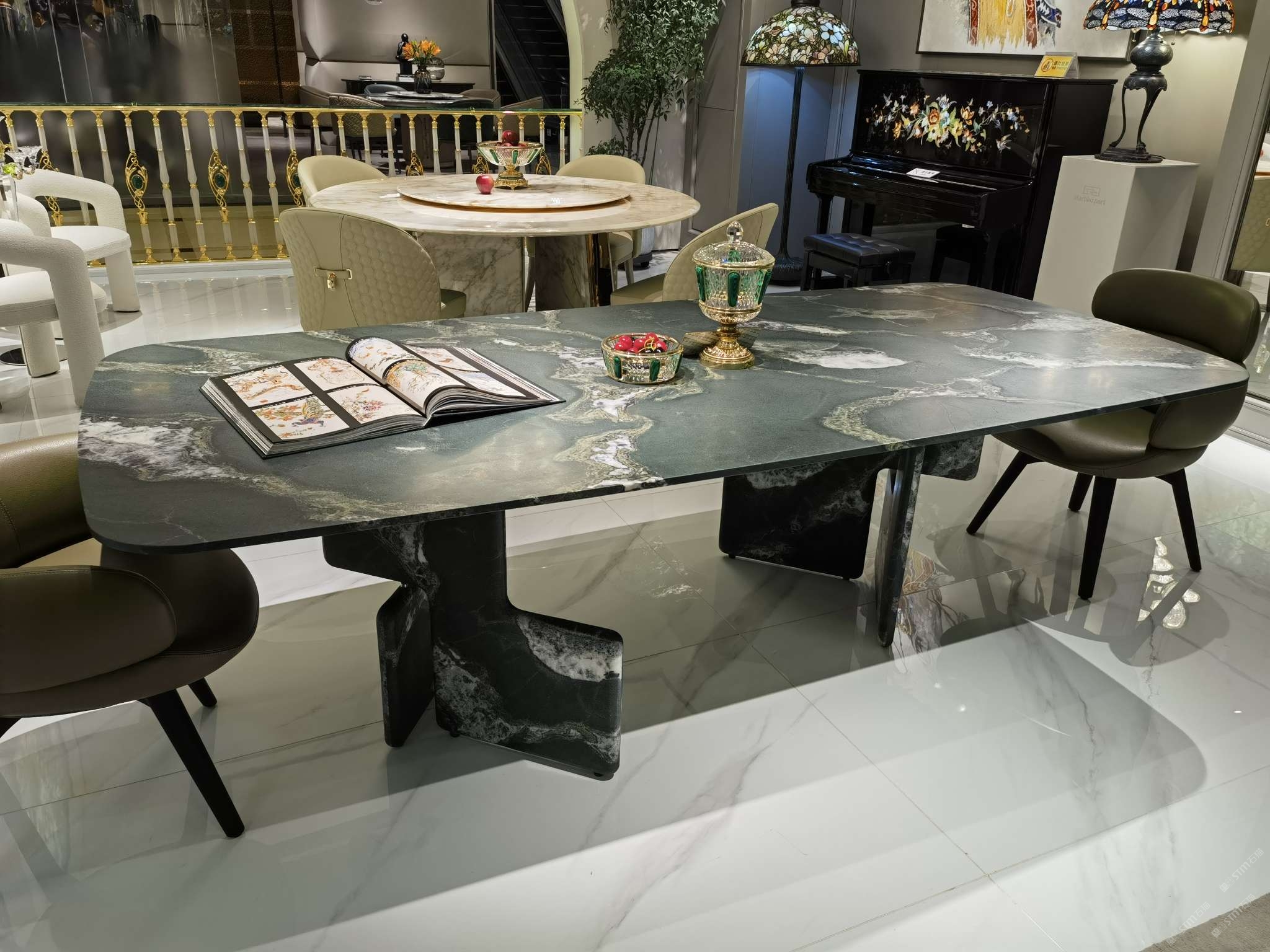 綠島行云奢石餐桌