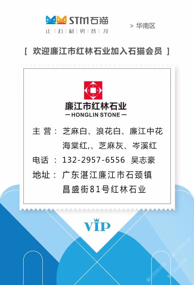 廉江市紅林石業(yè) 聯(lián)系人:吳生    156****7056 查看 136****8950 查看 主營范圍: 大板批發(fā)、荒料、花崗巖加工、礦山、異型加工、 企業(yè)地址:廣東湛江廉江市石頸鎮(zhèn)紅林產(chǎn)業(yè)園內(nèi),熠家石業(yè)