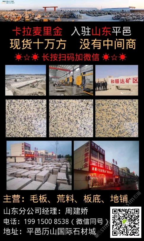 商圈 > 花崗巖 > 新疆和順達石材,卡拉麥里金,現(xiàn)貨30萬平米,方料多