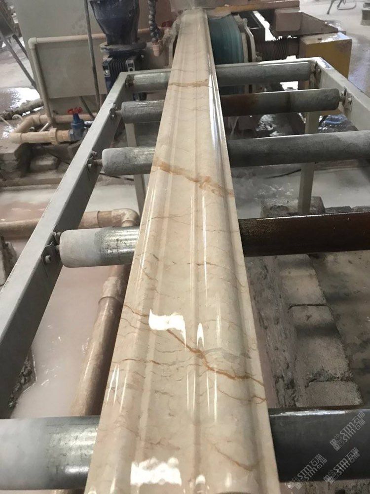 由天然石材經(jīng)過(guò)賽珂石業(yè)目前進(jìn)的全自動(dòng)線條機(jī)加工后,形成整體的連續(xù)的高光度石材線條,表面自然拋光而成,絕不打蠟。