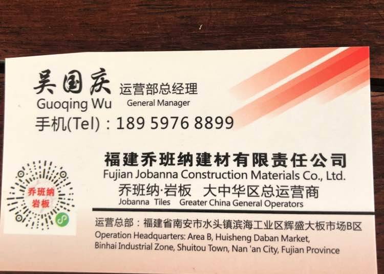 喬班納石業(yè) 聯(lián)系人:吳    189****8899 查看 手機號碼:無 主營范圍: 大板批發(fā)、荒料、礦山、 企業(yè)地址:福建泉州南安市水頭鎮(zhèn)輝盛大板市場B區(qū)