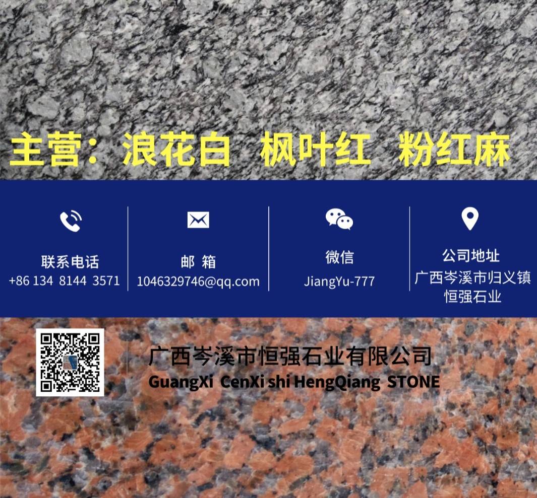 廣西岑溪市恒強石業(yè) 聯(lián)系人:蔣    134****3571 查看 134****3571 查看 主營范圍: 荒料、花崗巖加工、礦山、石材外貿(mào)、 企業(yè)地址:廣西岑溪歸義鎮(zhèn)恒強石業(yè)