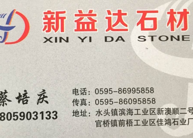 新益達(dá)石材 聯(lián)系人:蔡先生    137****1866 查看 手機(jī)號(hào)碼:無(wú) 主營(yíng)范圍: 大板批發(fā)、 企業(yè)地址:福建泉州新奧順2號(hào)門