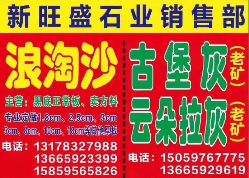 新旺盛石業(yè) 聯(lián)系人:曾(花崗巖)    131****7988 查看 手機(jī)號(hào)碼:無 主營(yíng)范圍: 大板批發(fā)、 企業(yè)地址:福建泉州南安市G1502(壽溪特大橋)東升石材城4通道D12-2