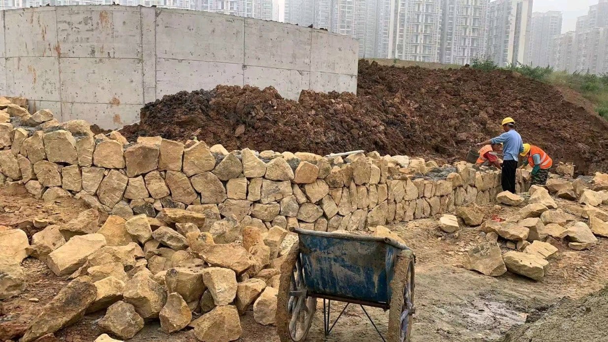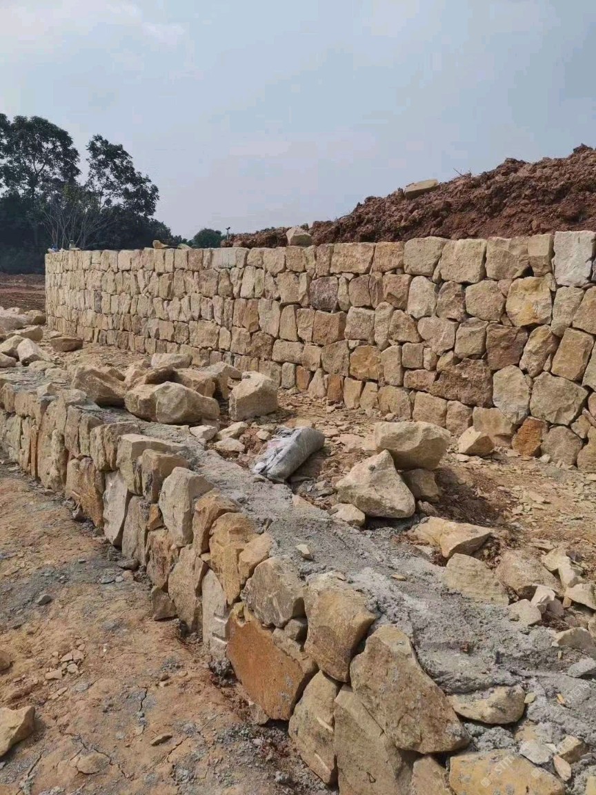 黃砂砂巖壘墻塊石 花園壘墻塊石 黃砂巖自然面碎拼墻石 直徑200-500mm大量供應(yīng)
