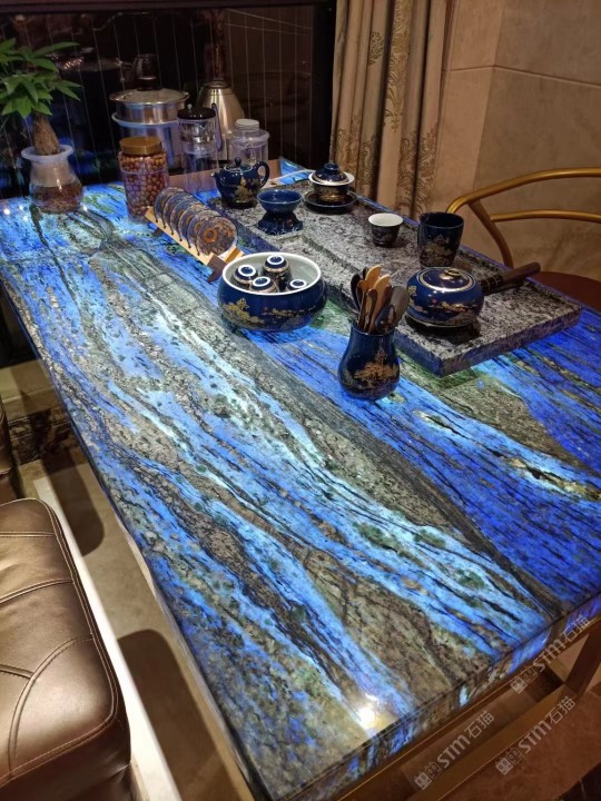 夢(mèng)幻藍(lán)寶 巴西純天然透光桌面