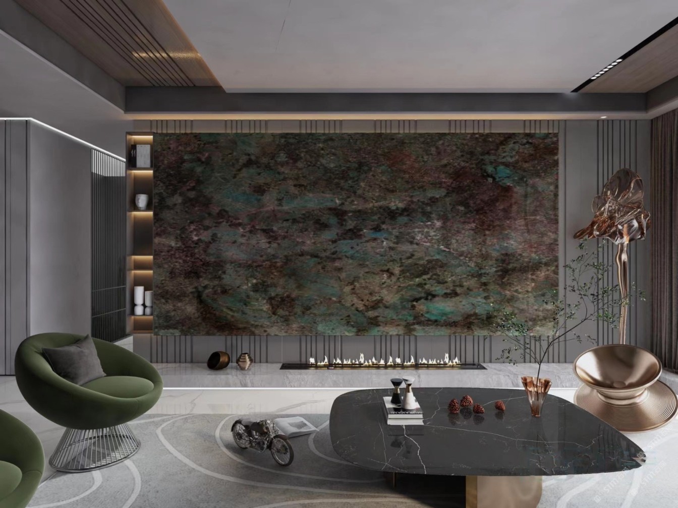 天然奢石電視背景墻亞馬遜綠