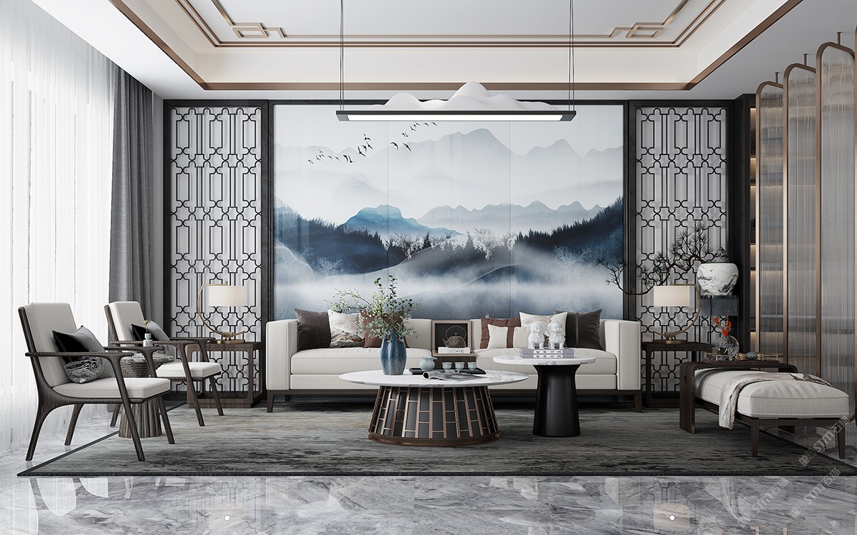 唐馳巖板定制 新中式背景墻裝修