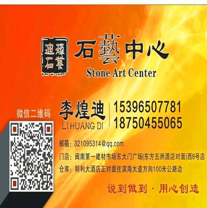 迪輝石業(yè)~石藝中心 聯(lián)系人:李煌迪    187****5065 查看 187****5065 查看 主營(yíng)范圍: 異型加工、石材雕刻、環(huán)境石材、石材工藝品、花崗巖加工、 企業(yè)地址:福建泉州水頭鎮(zhèn)閩南第一建材市場(chǎng)東大門(mén)堆場(chǎng)西8號(hào)