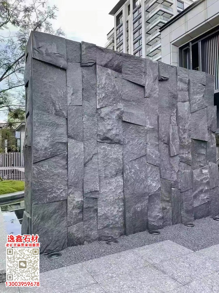 柬埔寨芝麻黑自然面背景墻劈裂石文化石新老礦芝麻黑石