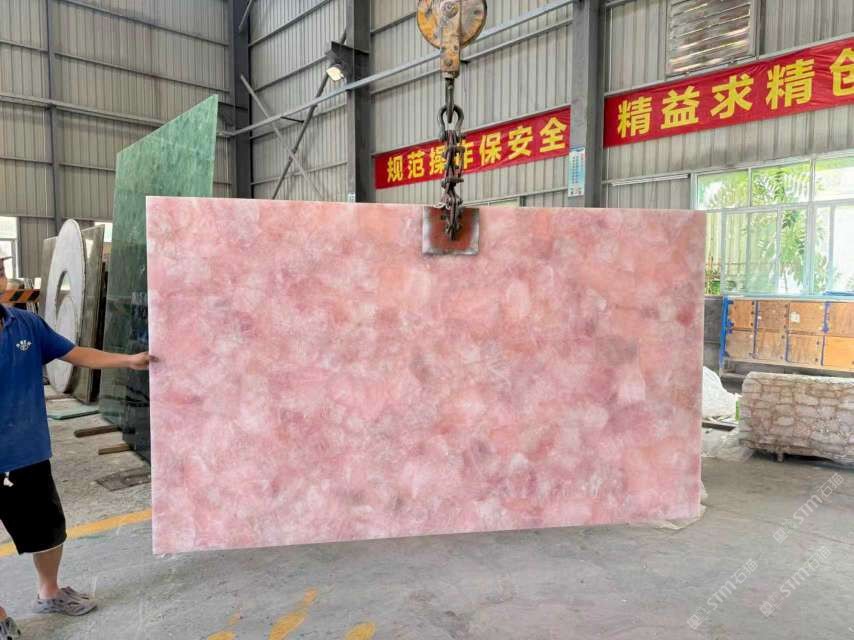 商圈 > 玉石&半寶石 > 批發(fā)定制粉水晶大板,透光石材,半寶石板材