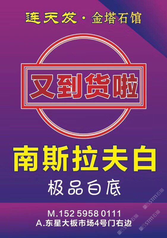 發(fā)布信息: 【連天發(fā)·金塔石館】 ?? 南斯拉夫白 ??繼續(xù)卸柜中?。?! 欲整票出售!或挑料定切!近期將有大量現(xiàn)貨新鮮出爐![憨笑] 卸于:大盈工業(yè)區(qū)匯鵬廠 熱線:18314672560 楊