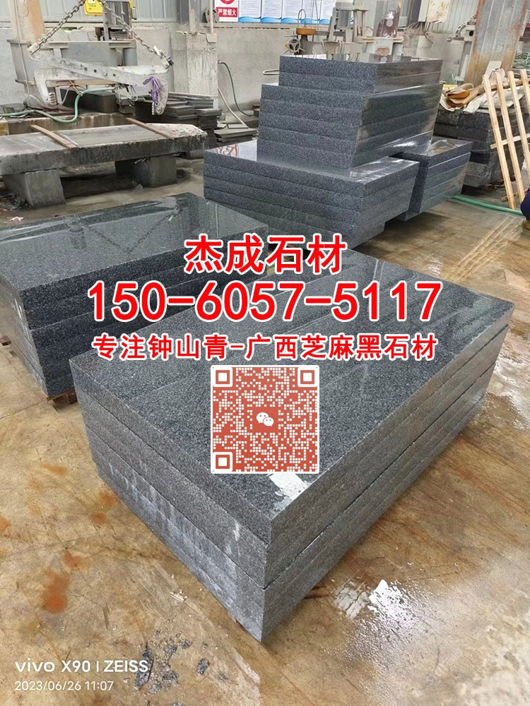 鐘山青-廣西芝麻黑-廣西654-鐘山綠-金點(diǎn)綠-新礦芝麻黑-便宜芝麻黑654石材 杰成石材工廠位于廣西省鐘山縣 林總15060575117 (微信同號(hào)),廠家批發(fā),同等品質(zhì)價(jià)格更有優(yōu)勢(shì),歡迎新老客戶溝通洽談!本廠專(zhuān)注于廣西芝麻黑,廣西芝麻黑荔枝面、廣西芝麻黑火燒面、廣西芝麻黑磨光面、光面芝麻黑、燒面芝麻黑、荔枝面芝麻黑、廣西G654、廣西654、新礦芝麻黑、新礦654、廣西芝麻黑石材、鐘山青、金點(diǎn)綠、廣西g654石材、鐘山青花崗巖、廣西芝麻黑廠家、廣西654價(jià)格、廣西芝麻黑工廠、廣西芝麻黑花崗巖、廣西黑石材、廣西深灰麻、新芝麻黑、新654、新G654、新品種芝麻黑、新礦山芝麻黑654、新654芝麻黑、廣西童子黑石材、廣西黑花崗巖、光面芝麻黑石材、燒面芝麻黑石材、荔枝面芝麻黑石材、機(jī)切面芝麻黑石材、自然面芝麻黑花崗巖、菠蘿面芝麻黑石材,廠礦一體;加工方式有規(guī)格板,臺(tái)階板,工程板,路沿石,墓碑,地磚,盲道,光板,火燒板,荔枝面,刴斧面,蘑菇面,自然面,樹(shù)圍花圍、坡道磚、水溝蓋板等