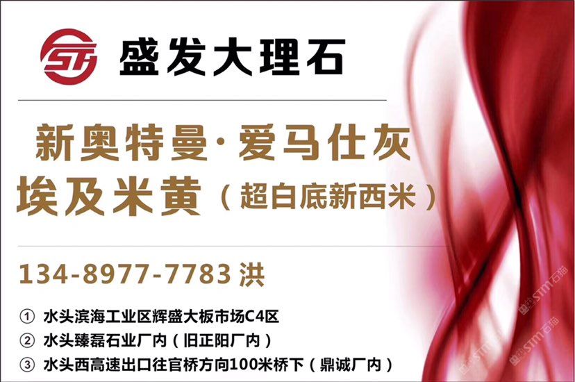 發(fā)布信息: 盛發(fā)大理石主營:愛馬仕灰,奧特曼,埃及米黃(超白底新西米米)貨源穩(wěn)定,庫存充足,量大價優(yōu),質(zhì)量保證 地址:水頭濱海工業(yè)區(qū)輝盛大板市場2號門C區(qū)?4 ?? :13600717930 13489248313黃