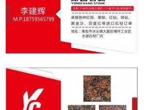 福福石材主營產(chǎn)品:浪淘沙,浪淘沙1,浪淘沙2,浪淘沙4,大浪淘沙,幻彩紅6,幻彩紅4,電解幻彩紅,幻彩紅5,幻彩紅8,幻彩紅,幻彩紅2企業(yè)地址:福建南安閩南第一建材市場27棟4號(hào)